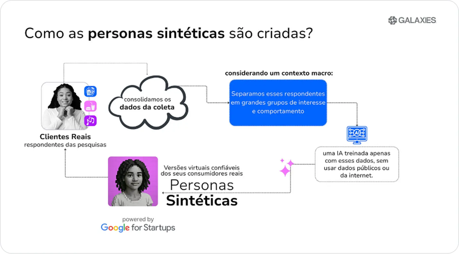 Juntas, as empresas estruturaram o produto principal da Galaxies: as Personas Sintéticas que, com o apoio das ferramentas do Google Cloud, ganharam mais agilidade e escala, tornando-se ainda mais inteligentes e precisas.